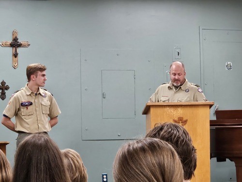 Congratulations to scout, Trace Rouser, who was recognized and celebrated for his attainment of Eagle Scout at his Eagle Scout Court of Honor held at First United Methodist Church (First UMC) on Saturday, November 23, 2024! Trace is a member of Scouts BSA Troop #818, which meets at First UMC. The Eagle Scout rank represents the highest level of achievement within the Scouts BSA program. It is a symbol of a Scout’s dedication, leadership skills, and commitment to serving their community. Eagle Scout includes earning a minimum of 21 merit badges, but is also about character development, leadership, and making a positive impact on society. Only 4% of Scouts earn the Eagle Scout rank. Trace is one of many from Troop #818 to attain the rank of Eagle Scout. Troop #18 (now Troop #818) was the first Boy Scout troop in Stillwater, begun in 1920. The troop was brought to FUMC in 1962. We are told that this is the oldest troop in the Cimarron Council under continuous sponsorship by the same organization. Way to go, Trace!