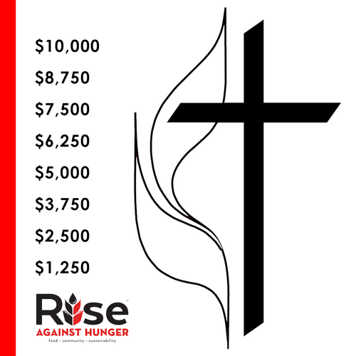 Throughout the season of Lent, we are raising funds for Rise Against Hunger, along with our sister UMC congregations: Eden Chapel, Highland Park, Lost Creek, Perkins First. During the season of Lent, it is traditional for Christians to make a sacrifice...maybe that favorite cup of coffee, Sonic drink, entertainment outing, one meal a week, etc. The money saved can be donated to the Rise Against Hunger Lenten project. Our community goal is to raise $10,000 by Easter Sunday. These funds will then be used for a meal packaging event in May. We aim to package over 24,000 meals that will be sent around the world where food is scarce.