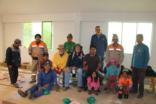 The Stillwater construction team and Bolivian volunteers installing a wood floor in the new chapel, April 2024.