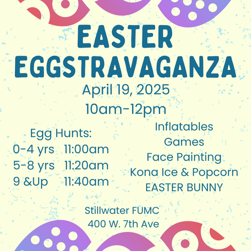 Come one, come all for this community-wide celebration on April 19th, from 10am-12pm! This year we will have inflatable games, face painting, kona ice and popcorn, and of course tons of fun! If anyone would like to be the Easter Bunny or assist with face painting, please contact Irene at iupson@fumcstw.org