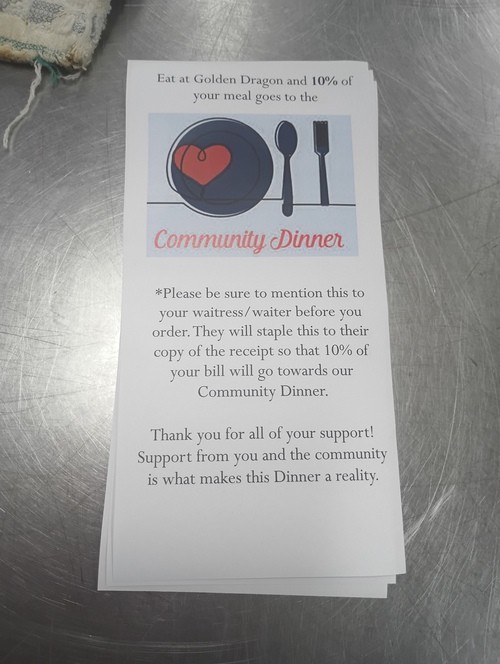 Golden Dragon Fundraiser for our Thursday Night Community Dinner