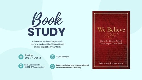 We have been invited by Pastor Michael Carpenter of Lost Creek UMC to join him as he leads a 6-week study through his latest book, We Believe: How the Nicene Creed Can Deepen Your Faith. The study will be held at Lost Creek UMC (8002 S Washington Street, Stillwater, OK 74074) on Sunday evenings, 4:00-5:00 pm. This study begins on Sept. 7 and runs through Oct. 12.