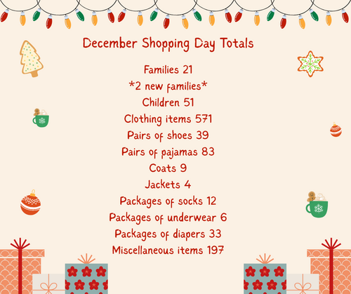 We closed out the year with a joyful shopping day, serving 21 foster care families and 51 children. Thanks to your generosity, families received essentials including: