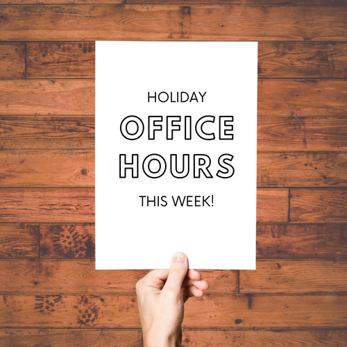The office will be open 9:00 am to 3:00 pm on Dec. 29, 30, 31 and Jan. 2.