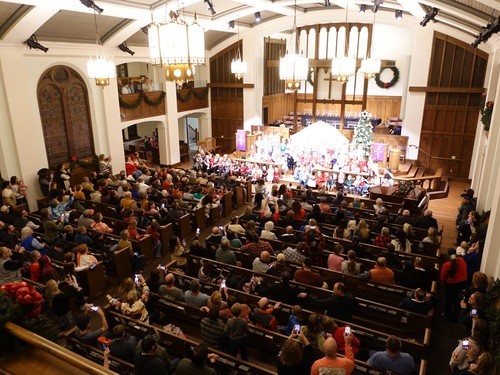 Over 300 people gathered in our sanctuary on Friday, Dec. 5 for the annual Early Childhood Center Christmas Program. It was a good test run for Christmas Eve! (Our 5:00 pm service was full with 423 in attendance.) All the children did a great job telling the Christmas story to parents, grandparents, big brothers and sisters.