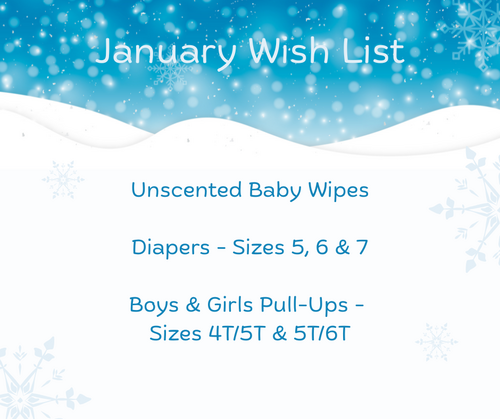 Over the past quarter, thanks to the generosity of our community, we were able to place more than 80 packages of diapers into the hands of families who truly needed them. Each one represents comfort, relief, and a reminder that none of us are doing this work alone. As we prepare for our next shopping days, following are a few items we are in need of: