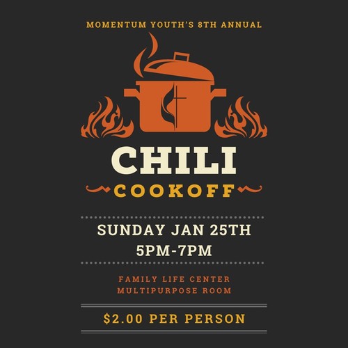 Momentum Youth’s 8th Annual Chili Cook-off is January 25, 5:00-7:00pm! $2 a person at the door gets you a full chili dinner, as well as an opportunity to taste the entries! Enter YOUR favorite chili by CLICKING HERE or contact Janelda Lane at jlane@fumcstw.org