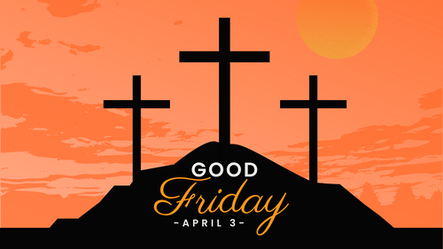 On Good Friday, April 3, at 7:00pm, we'll gather in the sanctuary for worship. This is the day Jesus dies on the cross. Our time of worship will be somber and reflective. Our choir will sing a special anthem over us. We'll have seven devotions at the foot of the cross. As we hear about Jesus' last breath, darkness will descend. We'll depart in silence.