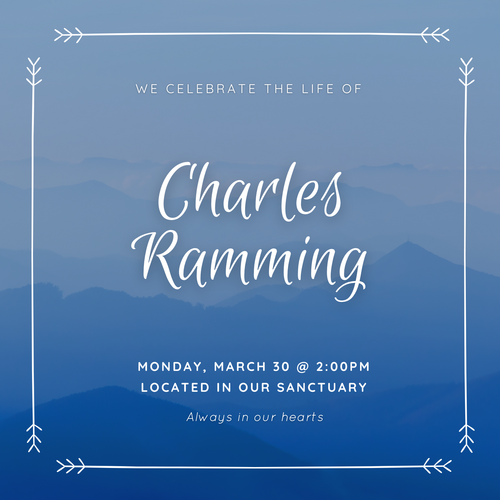 We are praying for Wilma Ramming and her family. Charles Ramming passed away on March 13. His memorial service will be in our sanctuary on Monday, March 30 at 2:00 pm. A short reception will follow.